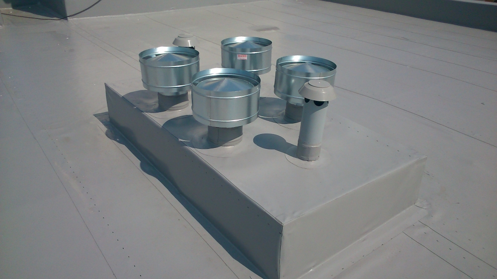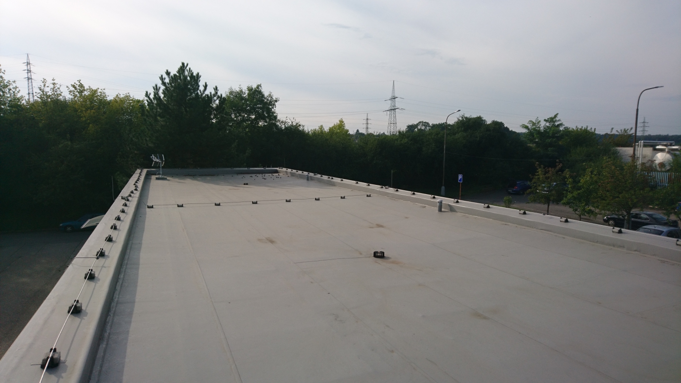 Při samotné rekonstrukci ploché střechy byla aplikována tepelná izolace EPS desky a jako hlavní pro hydroizolace střechy bylo použito mPVC Rhenofol CV 1,5 mm.